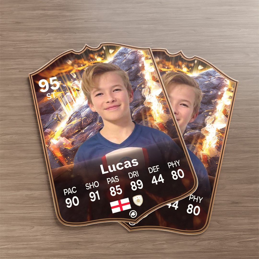 Yes! Our football card designers will remove the background from the photo you upload so it looks just like the football cards you might’ve seen games like EA FC 25, EA FC 24 or FIFA. We’ll also position the photo perfectly on the football card so it looks great. If there are any problems with the quality of your photo, we’ll reach out and let you know. Plus, our website's AI will remove the background on the image for visual purposes before purchase so you can see it without a background on the card.