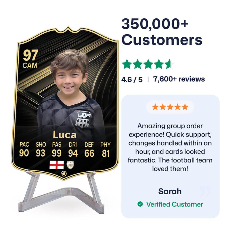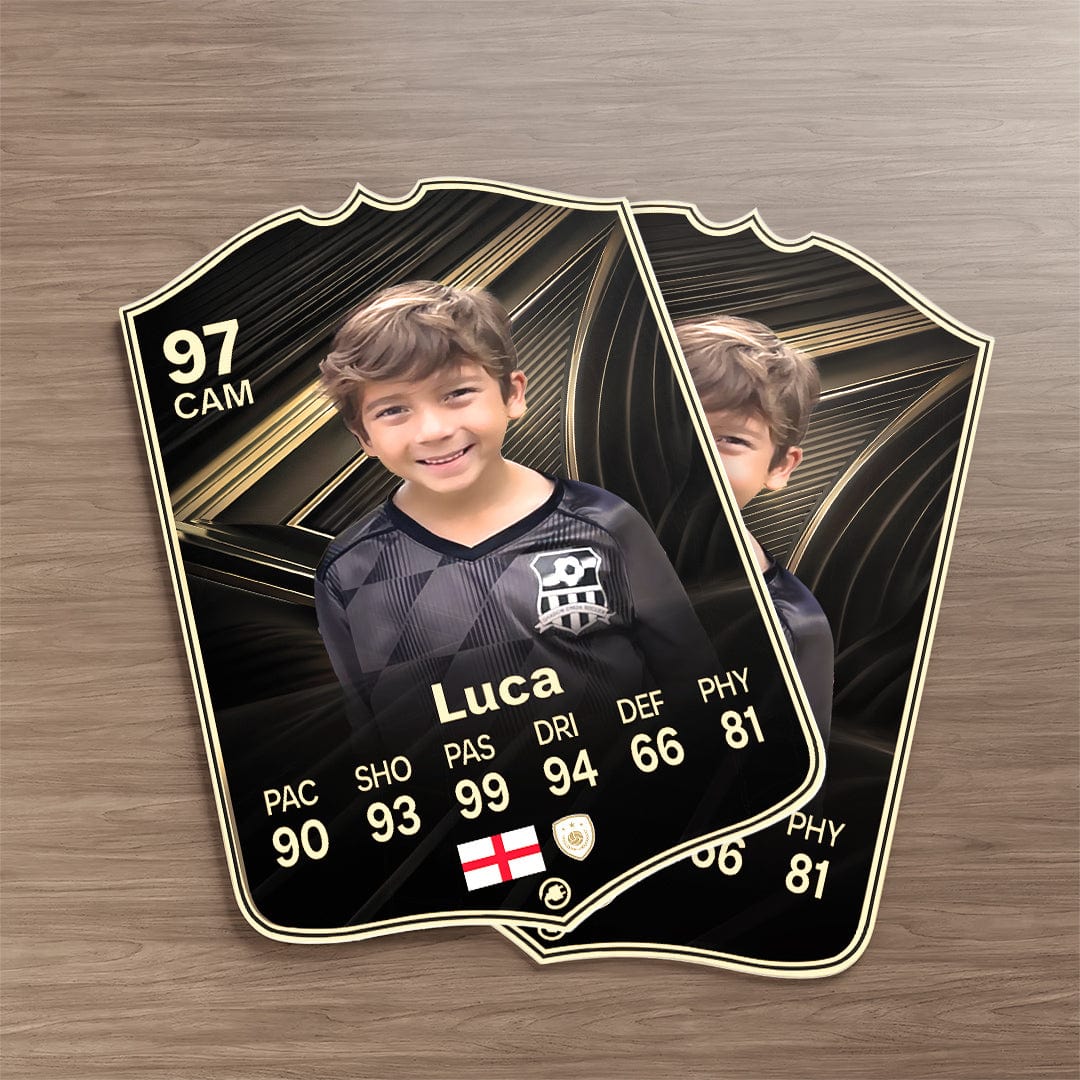 Yes! Our football card designers will remove the background from the photo you upload so it looks just like the football cards you might’ve seen games like EA FC 25, EA FC 24 or FIFA. We’ll also position the photo perfectly on the football card so it looks great. If there are any problems with the quality of your photo, we’ll reach out and let you know. Plus, our website's AI will remove the background on the image for visual purposes before purchase so you can see it without a background on the card.