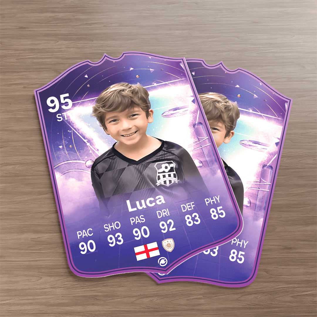 CardsPlug is home to the world’s favourite personalised football cards. Our easy football card builder lets you make a real life football card with your own name, photo, and skill ratings. With 100+ designs to choose from and some inspired by EA SPORTS FC 26 cards seen in EA FC 26, EA FC 25 and FC 24 as well as FIFA cards seen in games like FIFA 23 and FIFA 22.