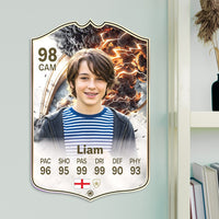 Our football card builder lets you choose between two different card materials. Our Standard cards are made of a ultra-strong variety of Foamex (not cardboard or foam!). This material has a lovely gloss finish and is also super durable. Our world-exclusive Metal football cards have a matte finish and are slightly heavier. Both look amazing and will last forever.